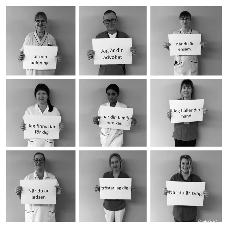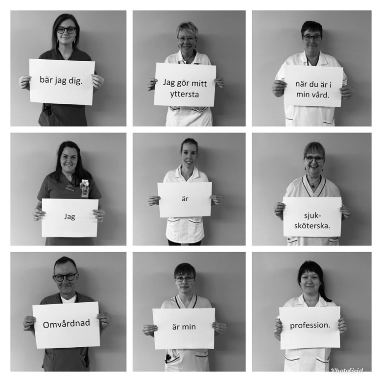 – Jag vill verkligen lyfta fram sjuksköterskans roll. Kan det här hjälpa till att belysa det vi gör och höja yrkets status vore det bra. 2020 skull vara sjuksköterskans och barnmorskans år, och det kan man väl säga att det verkligen blev. Det här är alla sjuksköterskans arbetsuppgifter komprimerade, hela vår profession på tre blad. Vi är ännu viktigare nu när varenda avdelning har besöksförbud. Det är en saknad hos många av oss att anhöriga inte får vara med, att patienter ska behöva gå igenom behandlingar och undersökningar, ibland hemska saker, utan stöd från dem.