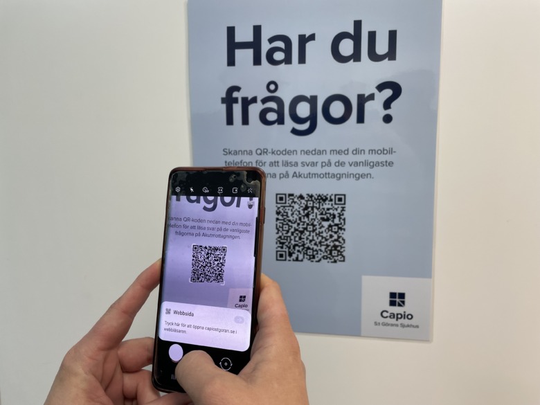 En sådan film bestämde de sig för att göra själva. Sedan en vecka tillbaka rullar den på monitorerna i väntrummen. De fyra kollegorna i arbetsgruppen spånade också fram 21 vanliga frågor som patienter på akuten ställer, och formulerade svar. Genom att scanna en QR-kod som satts upp på väggar i korridorer, väntrum och övervakningsrum kan patienter och anhöriga nu snabbt få tillgång till dem.