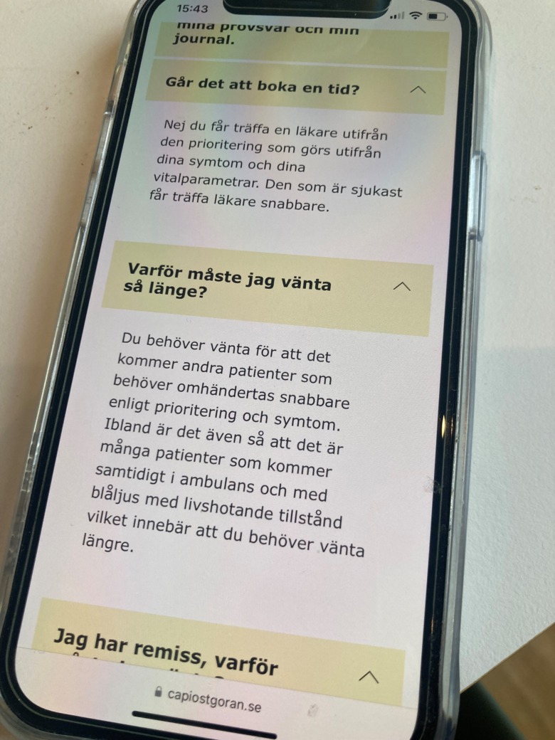 – Det fanns ett av behov att förklara våra arbetssätt och yrkesroller. På akuten finns ju ingen turordning som bygger på när du har kommit in, utan på en bedömning av symptomen och hur länge du har haft dem. Ett hjärtstopp går jättefort, men en tå som varit svullen i tre veckor får väldigt låg prioritet. Och bara för att du träffat en person så innebär det inte att du är färdig att gå.