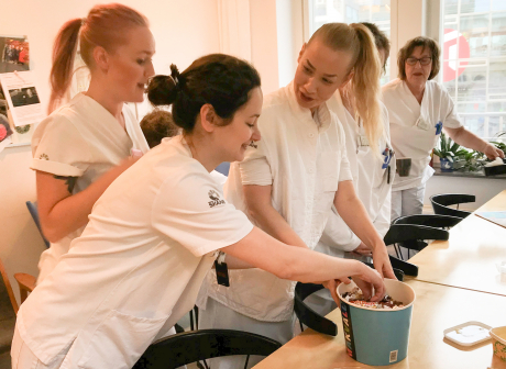 – Om det uppskattas? Det är väl klart, vi är lite av en minoritet på sjukhuset så det här känns kul, säger röntgensjuksköterskan Olivia Fridlund samtidigt som hon snappar åt sig en godisbit.